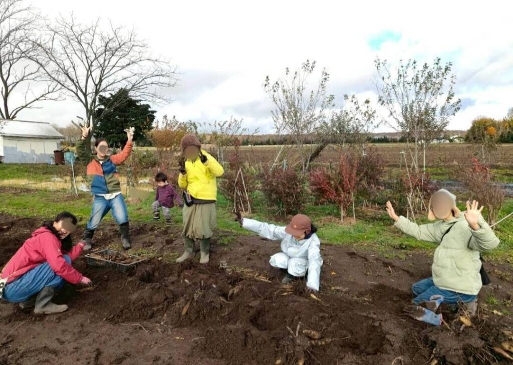 🌱畑と循環の暮らし講座:午前もしくは午後のどちらかで、きらくる村の共同ばたけを使って自然栽培の畑作りを一緒に学びます。内容は、親しみやすい『カレーの具材』となる野菜や、そのほか北海道で育つ野菜や野草等を題材にしていくほか、『循環の暮らし』をテーマとし、家庭でも即活かせる「野菜の長期保存方法」や「コンポスト」、育てた大豆から作る「味噌づくり」などをしていきます。